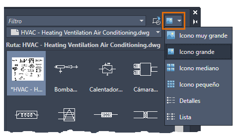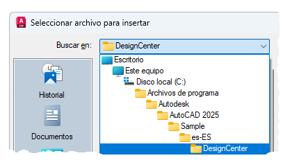 Nota: La primera vez que se hace clic en Bloques de bibliotecas, se abre un cuadro de diálogo de selección de archivos en el que se puede elegir un dibujo de biblioteca de bloques inicial.