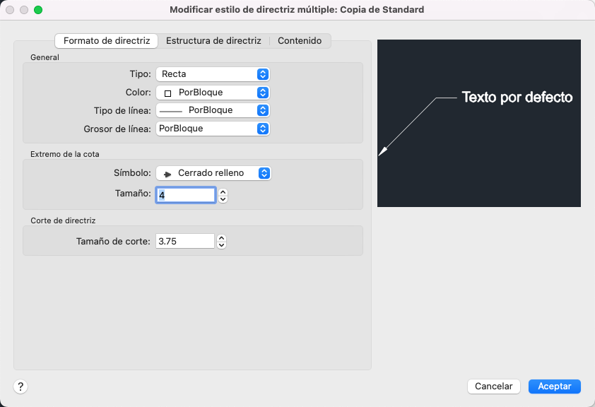 Controla el aspecto general de la directriz múltiple.