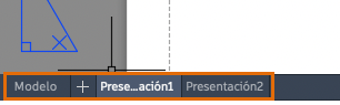 Por defecto, en la esquina inferior izquierda del área de dibujo, se muestran una ficha Modelo y varias fichas de presentación guardadas.