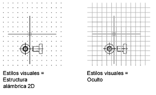 Si amplía o reduce el dibujo, el intervalo de la rejilla se ajusta automáticamente para adaptarse al nuevo tamaño. Esta función recibe el nombre de visualización de la rejilla adaptativa.