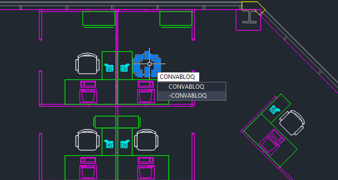-CONVABLOQ: en la solicitud de comandos, convierte las entidades seleccionadas y los ejemplares idénticos en bloques.