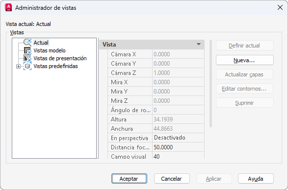 Únicamente para las vistas modelo y actual, precisa si la vista en perspectiva se encuentra activada.