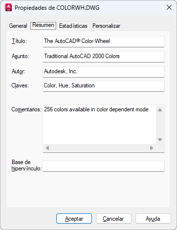 Ficha Resumen (cuadro de diálogo Propiedades de dibujo)
