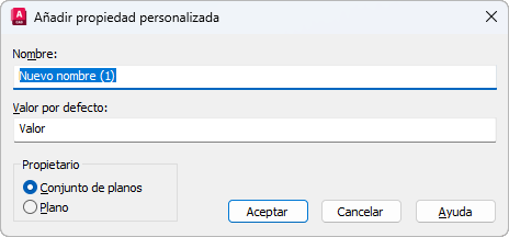 Crea una propiedad personalizada que se asocia con el conjunto de planos actual o con cada plano.