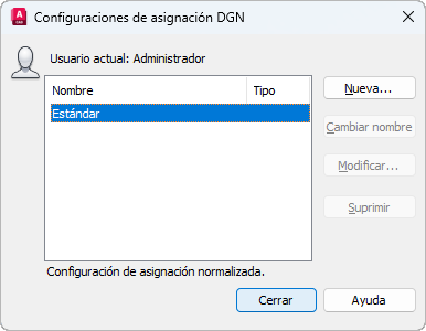 Crea, renombra, modifica y suprime configuraciones de asignación para importación o exportación de datos DGN.