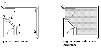 Al pulsar Mayús mientras hace clic, se tienen en cuenta o se dejan de tener en cuenta las áreas. También se incluyen los perímetros de las islas cerradas, como se muestra en la ilustración siguiente.