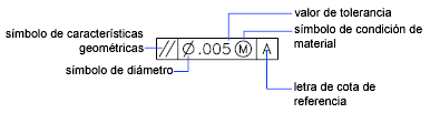 El símbolo se inserta en el cuadro de texto Sím. del cuadro de diálogo Tolerancia geométrica. En la tabla siguiente, se describen los símbolos.