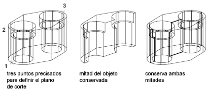 Utilice el comando CORTE para cortar una superficie o un sólido 3D. Se debe especificar un plano de corte o seleccionar una superficie.