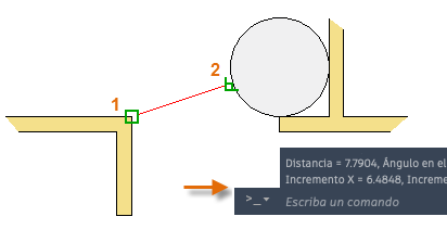 Entrada dinámica | Muestra las distancias y los ángulos cerca del cursor y acepta la entrada al utilizar la tecla Tabulador entre los campos. |