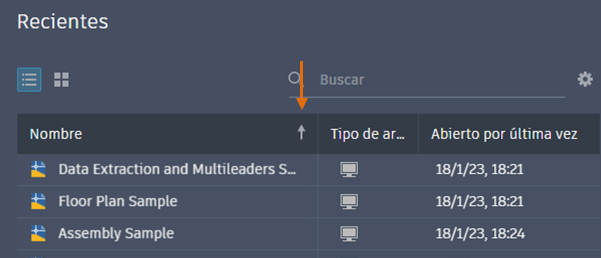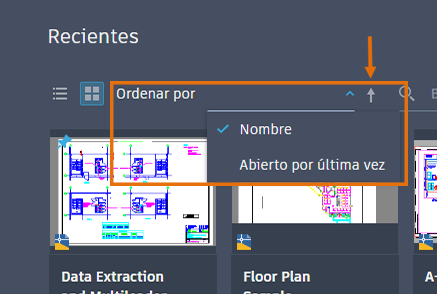 La lista de dibujos recientes utiliza miniaturas más pequeñas para permitir que se muestren más dibujos. Ahora puede ordenar y buscar los dibujos recientes en las vistas de rejilla y de lista.