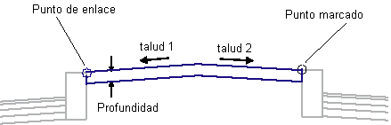 El punto de enlace puede estar en cualquiera de los bordes de la rasante de la mediana. El punto marcado debe estar en el borde opuesto.