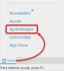 Los aprendizajes guiados son un método excelente para empezar. En Inicio de Inventor, haga clic en Aprendizajes, en la esquina inferior izquierda.
