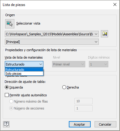 En la lista de piezas, se eliminan del menú desplegable los métodos de creación de la lista de piezas heredada. Si es necesario para mostrar las listas de piezas heredadas, se puede proporcionar la clave del registro.