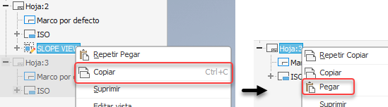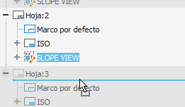 Mueva fácilmente vistas dibujadas a otro plano. Haga clic en el nodo del navegador y arrástrelo desde el plano activo hasta el plano de destino.
