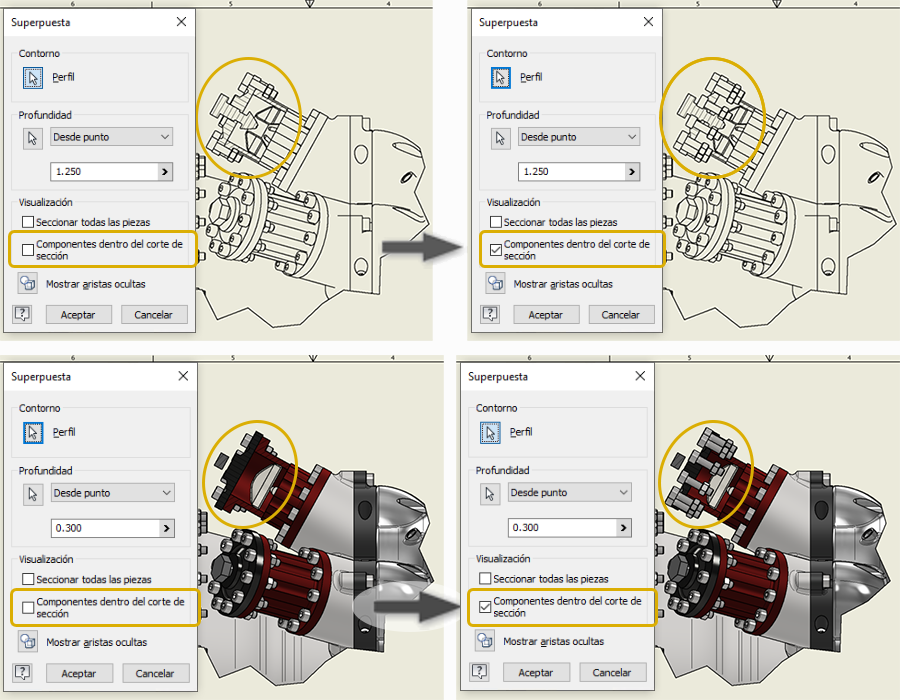 Mejora del flujo de trabajo: al crear una vista superpuesta, si no existe un boceto que defina el contorno superpuesto, se crea, se activa un boceto y puede empezar a añadir geometría.