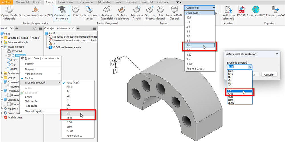 En esta versión, se añade la escala 1:5 al menú desplegable de escala de anotación según DIN EN ISO 55455