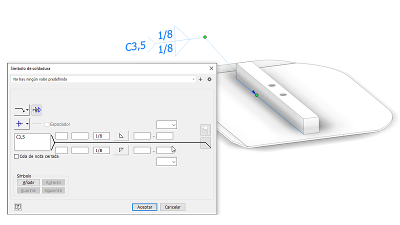 Símbolos de soldadura 3D