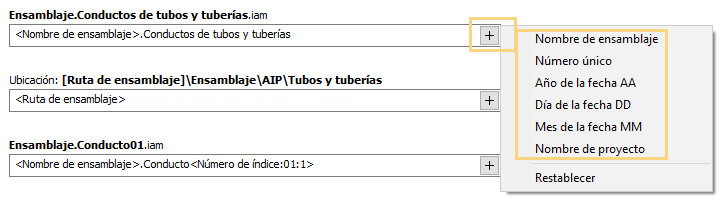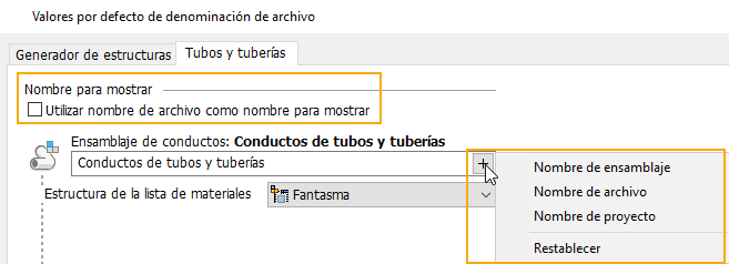 Para obtener más información, consulte Procedimiento para personalizar la estructura de carpetas de Tubos y tuberías.