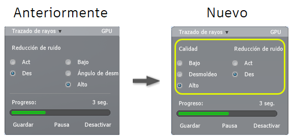 Se ha mejorado el cuadro de diálogo Trazado de rayos para aclarar la finalidad de las opciones que se presentan.
