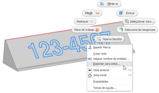 El comando Exportar cara como ahora admite la exportación de caras individuales o varias caras a la vez. Cuando se seleccionan varias caras coplanares, la opción de exportación se muestra en el menú contextual de selección.