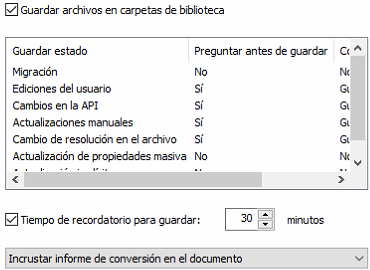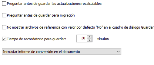Las solicitudes de Guardar estado reemplazan a las opciones de Preguntar antes de guardar las actualizaciones recalculables, Preguntar antes de guardar para migración y No mostrar archivos de referencia con valor por defecto "No".