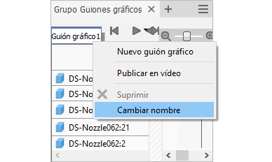 Puede cambiar el nombre de cualquier guion gráfico durante la creación o la edición de una presentación. Haga clic con el botón derecho en el título del guion gráfico y seleccione Cambiar nombre.