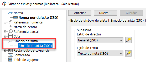 El estilo Símbolo de arista se encuentra añadido al Editor de estilos y normas de dibujo.