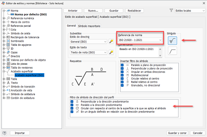 Ahora puede definir símbolos de acabado superficial según la norma ISO 21920-1.