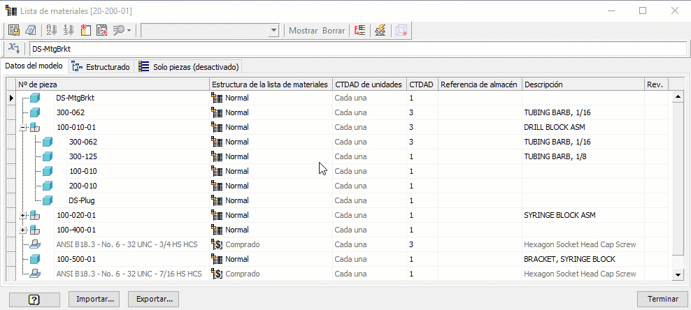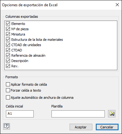 Para obtener más información, consulte Para exportar una lista de materiales a un archivo de hoja de cálculo o de texto.