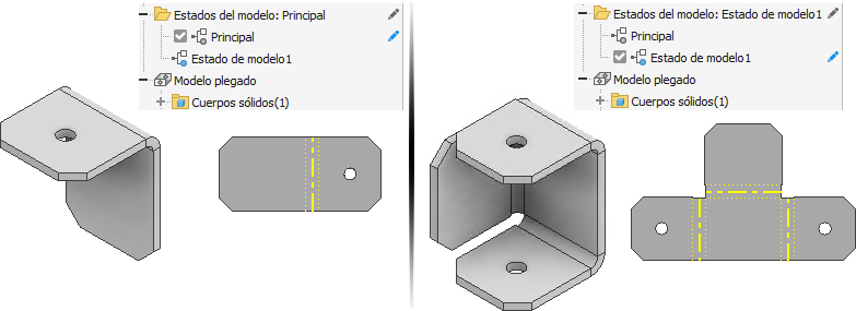 Las piezas de chapa también se benefician con los estados del modelo. Ahora, mediante los Estados del modelo, se pueden crear configuraciones con operaciones plegadas y desarrollos únicos.