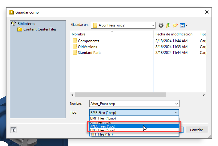 Además, Inventor ahora recuerda el último formato de archivo de exportación de imágenes utilizado y lo aplica a sesiones posteriores.