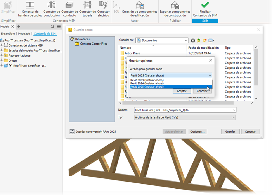 Al utilizar el comando Simplificar para exportar archivos de Revit (*.RVT), seleccione la versión en la lista desplegable.
