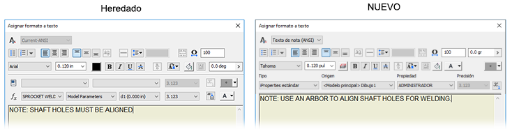 Algunos controles del cuadro de diálogo Asignar formato a texto se consolidan para mejorar el flujo de trabajo y reducir la sobrecarga de la interfaz. No hay cambios de comportamientos.