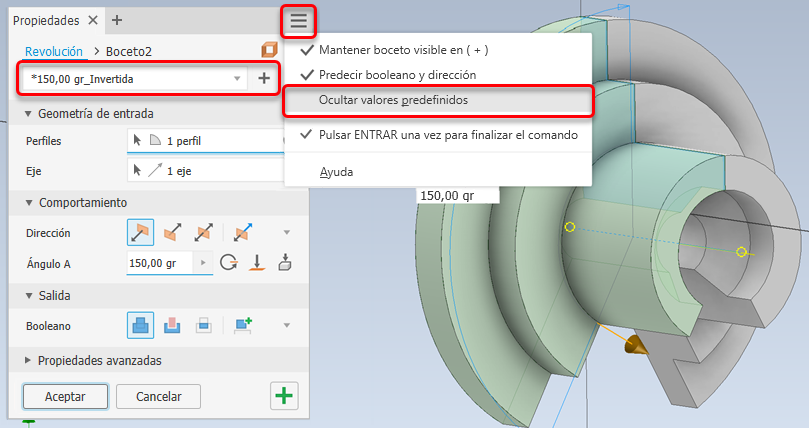 Todas las opciones del panel Propiedades ahora se conservan en los valores predefinidos.