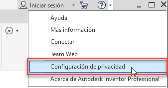 Configuración de privacidad en el menú desplegable Ayuda