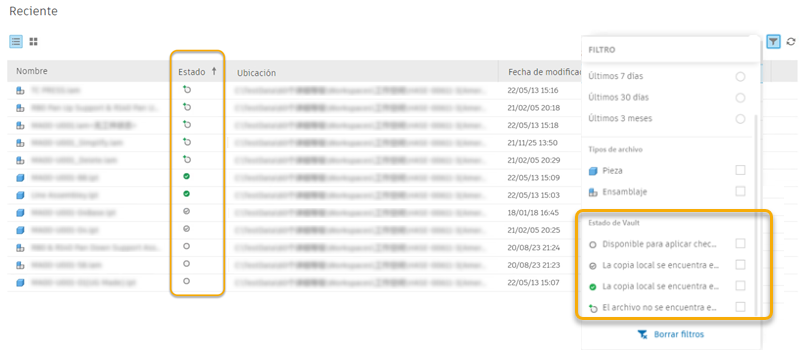 Si utiliza Vault, también puede filtrar mediante el Estado de Vault.