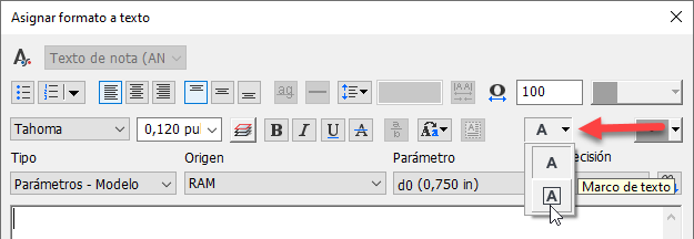 Ahora puede añadir la propiedad de borde rectangular para el texto de directriz 3D y la nota general mediante la opción del cuadro de diálogo Asignar formato a texto.