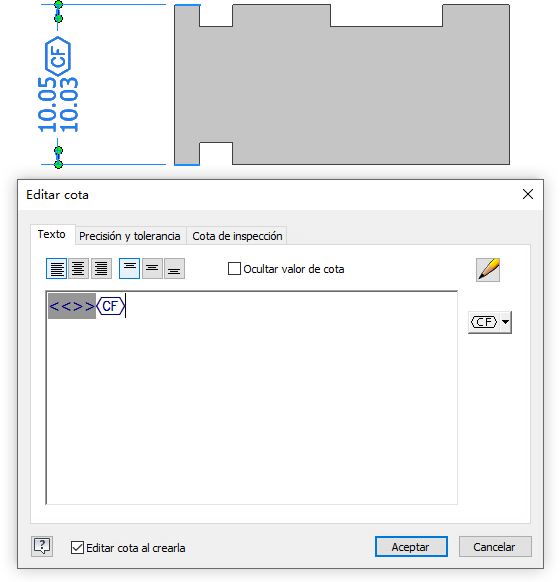 El símbolo de CF ahora está disponible en el cuadro de diálogo Editar cota 3DA y Asignar formato a texto.