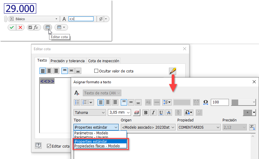 Para obtener más información, consulte Referencia de Editar cota.