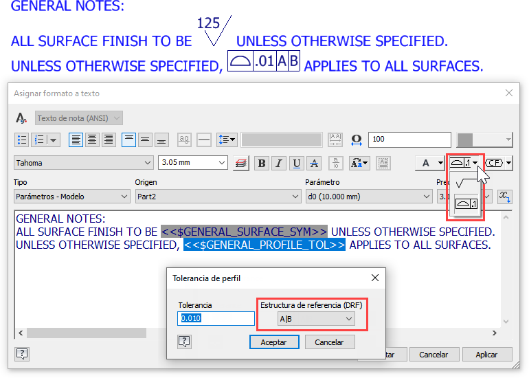 Para obtener más información, consulte Procedimiento para trabajar con anotaciones de operación de tolerancia y el Consejero de tolerancia.