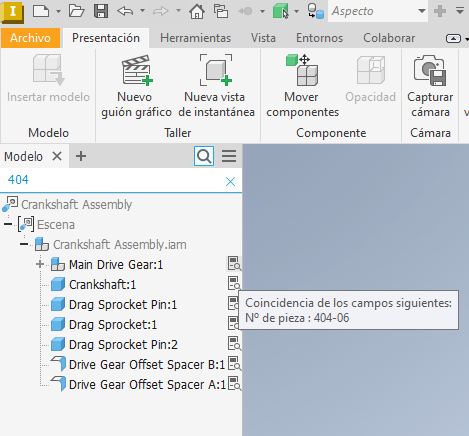 En esta versión de Inventor, se ha añadido la capacidad de buscar iProperties de documento dependientes en el tipo de archivo IPN.