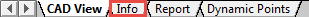 In addition to viewing measurement information in the CAD view, you can see all an item's measurements using the Info tab at the bottom of the Graphics window. The tab contains the following areas: