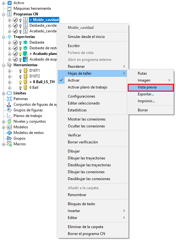 Se crean varios ficheros HTML temporales en la carpeta del proyecto y se abre la pestaña del PowerMill de PowerMill que recoge las hojas de taller.