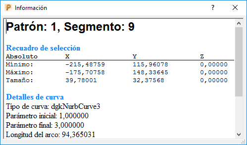 - Propiedades — Se muestran las extensiones, el tipo, y los puntos clave de la curva Bézier.