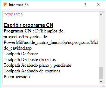 PowerMill calcula primero todas las trayectorias por lotes y luego posprocesa las trayectorias utilizando opciones preseleccionadas.