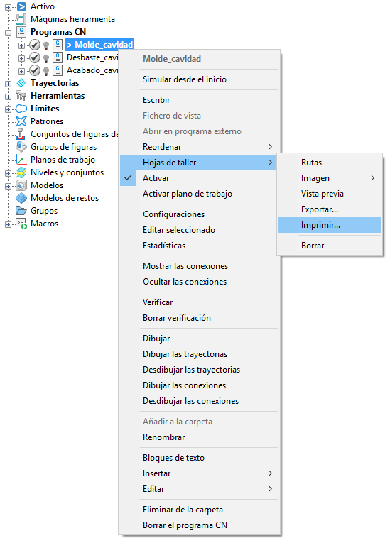 Imprimir hojas de taller las escribe en un solo fichero llamado print.html debajo de la subcarpeta de SetupSheets_files/project_sheets en la carpeta del proyecto de PowerMill.
