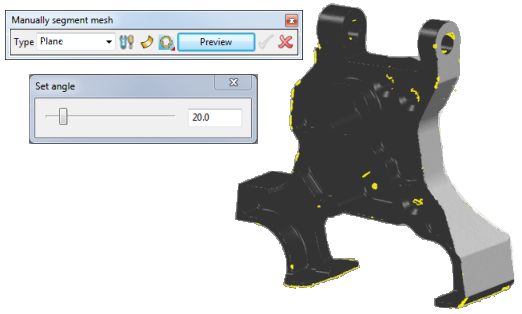 - Utilice las opciones de la barra de herramientas de Segmentar la malla manualmente para controlar la segmentación: