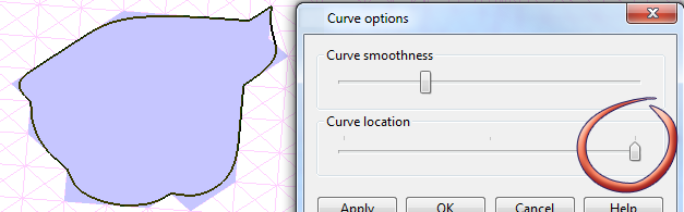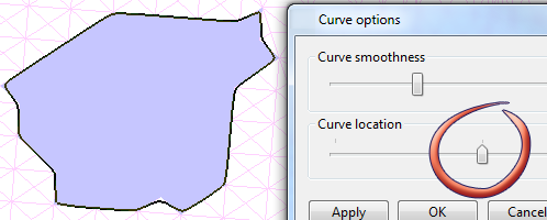 - Manipule la barra deslizante de Posición de la curva para ajustar la posición de la curva respecto del área delimitada. En la curva hay tres posiciones: