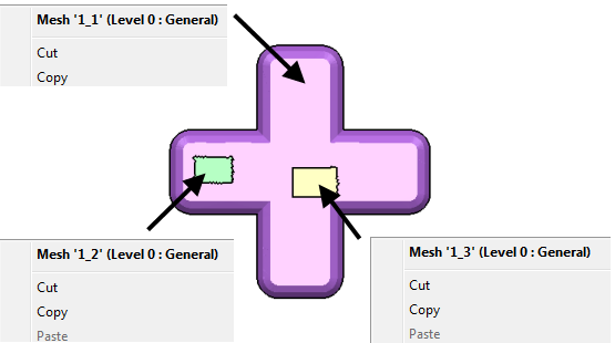- Haga clic con el botón derecho en cada área coloreada para verificar que se ha dividido la malla: