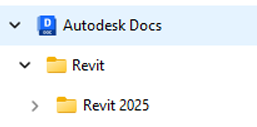 - En el Explorador de archivos de Windows®, busque la entrada de Autodesk Docs. Expanda la lista para ver los proyectos.